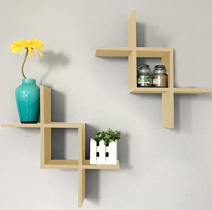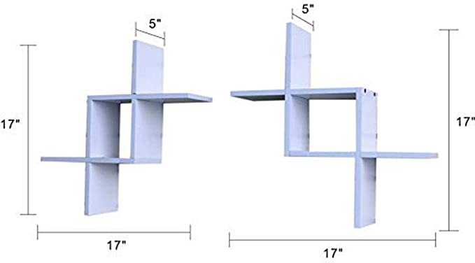 - Durably made – These criss cross wall mount floating shelves are light weight yet sturdy. They made of durable MDF laminate. Shelf measurements 17″ Long x 17″ Wide x 5″ Deep.